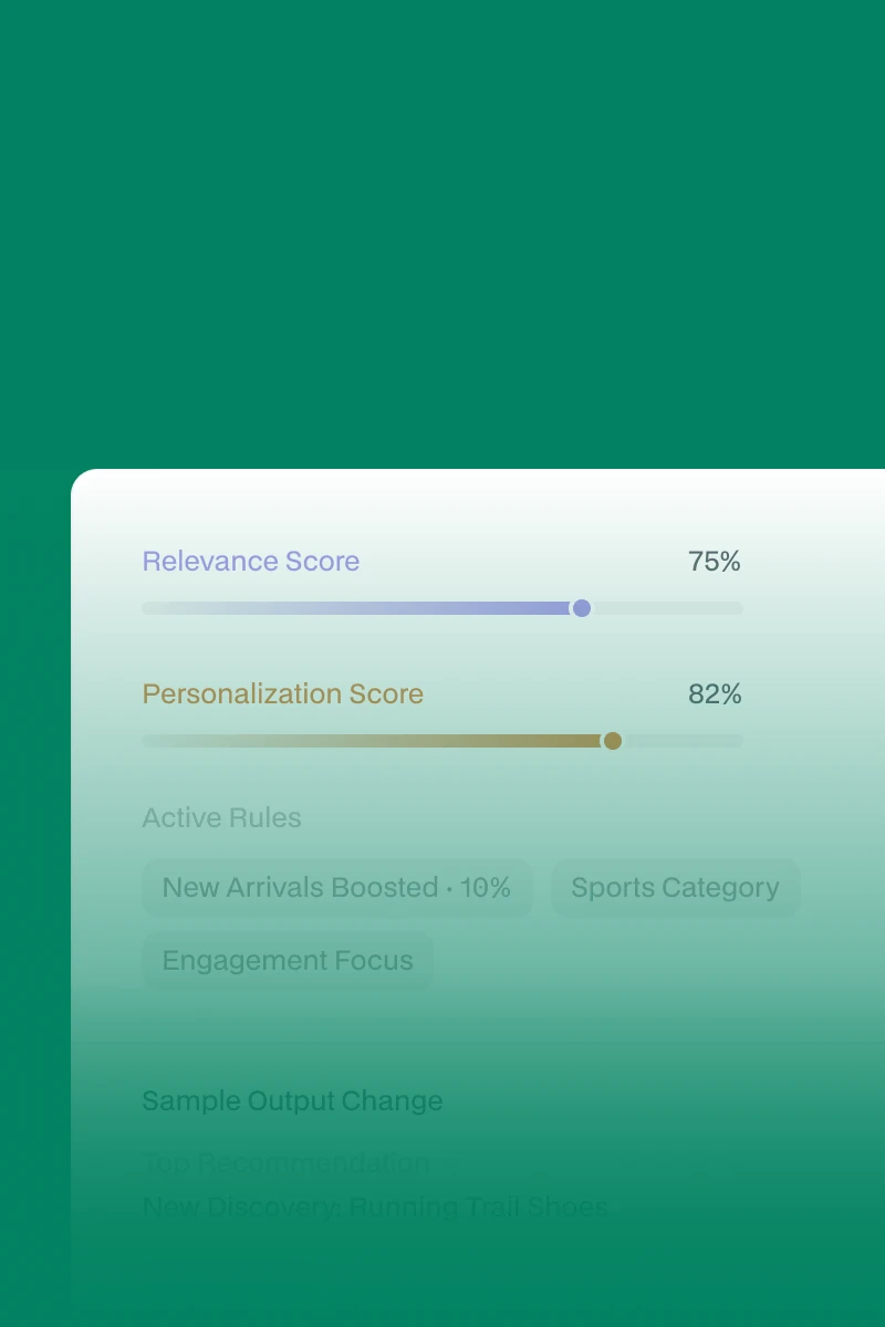 Prove value on one surface, then scale easily across search, recommendations, email, and more. Same API, same profiles, no re-implementation.