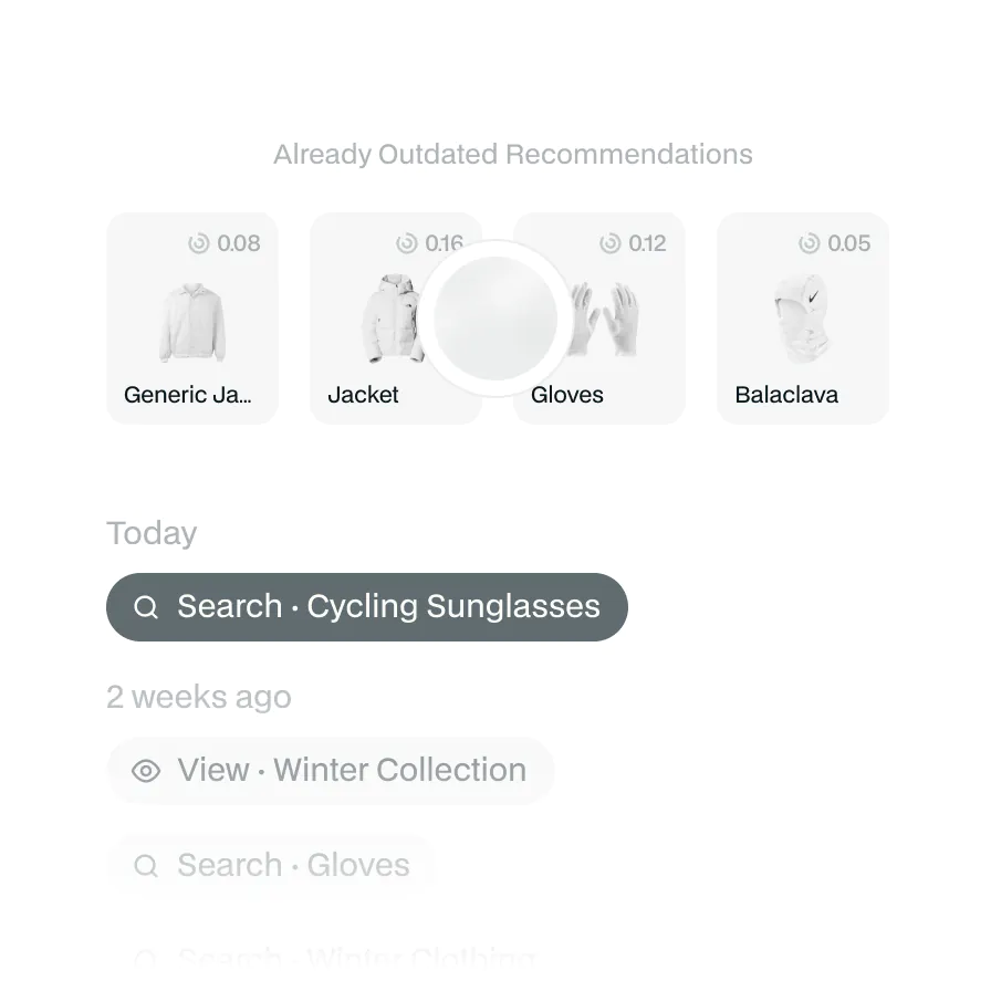 Around 95% of sessions have no reliable identity or history. Most tools can’t personalize without it, so the majority of shoppers see generic experiences and leave before finding something relevant.