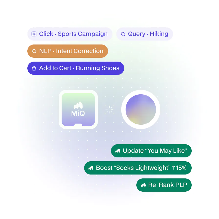 MIQ is built to understand intent the moment a session begins — even when a customer is completely unknown. By continuously learning from every past behavior, MiQ can understand each interaction as it happens and adapt immediately.